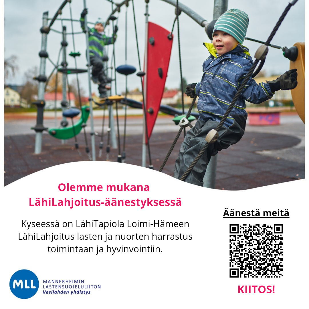 MLL Vesilahden yhdistys on mukana Loimi-Hämeen LähiLahjoitus -äänestyksessä. Lahjoituksella tuetaan lasten ja nuorten harrastus toimintaa ja hyvinvointia.